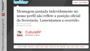 Twitter da Secretaria de Cultura do Governo de São Paulo publicou no Twitter,